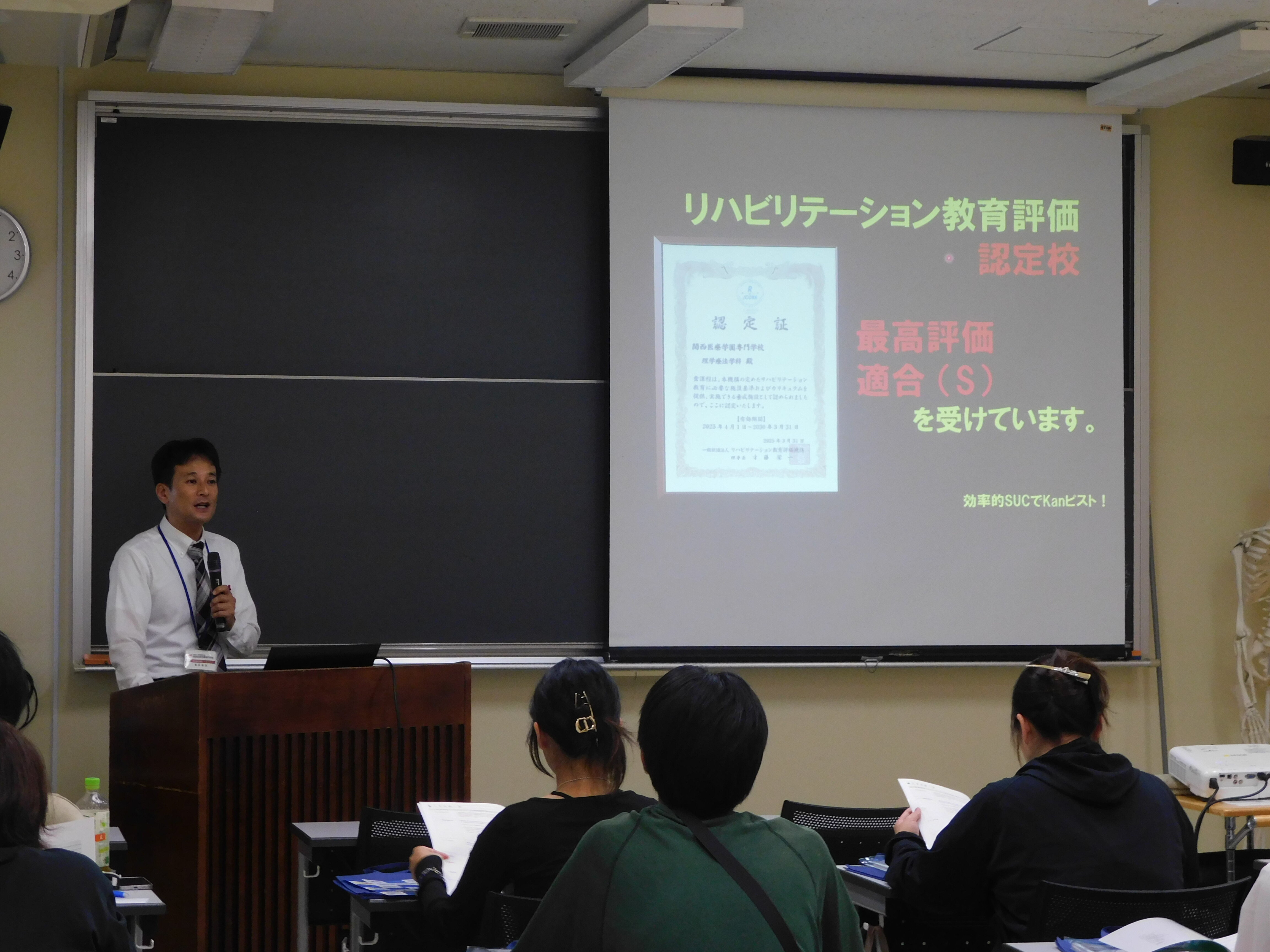入試情報2025年9月20日 理学療法学科 オープンキャンパス(個別相談型) 9月20日(土)理学療法学科ではオープンキャンパス(個別相談型)が開催されました。 まだまだ暑い中、多くの方にご参加いただきました。 学校案内を全体で説明した後に、個別相談を行いました。 本校専任教員は全員本校卒業生です。熱く、親身にご指導させていただきます。 次回のオープンキャンパスは10月18日(土)です。 ご参加お待ちしております。