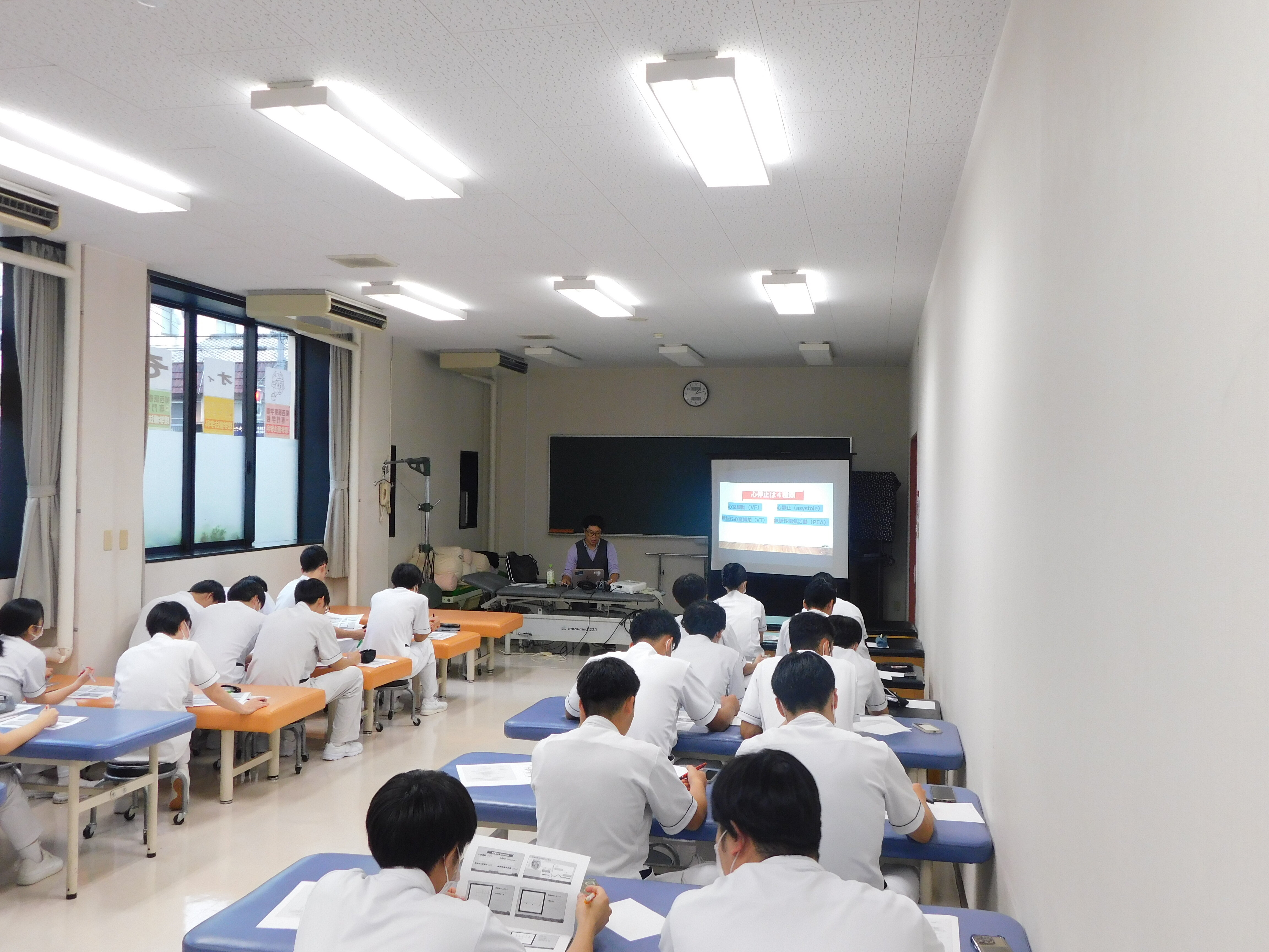 本日は、本校14期生である河野生先生を講師に迎え、「一次救命処置と二次救命処置」についてお話を頂きました。